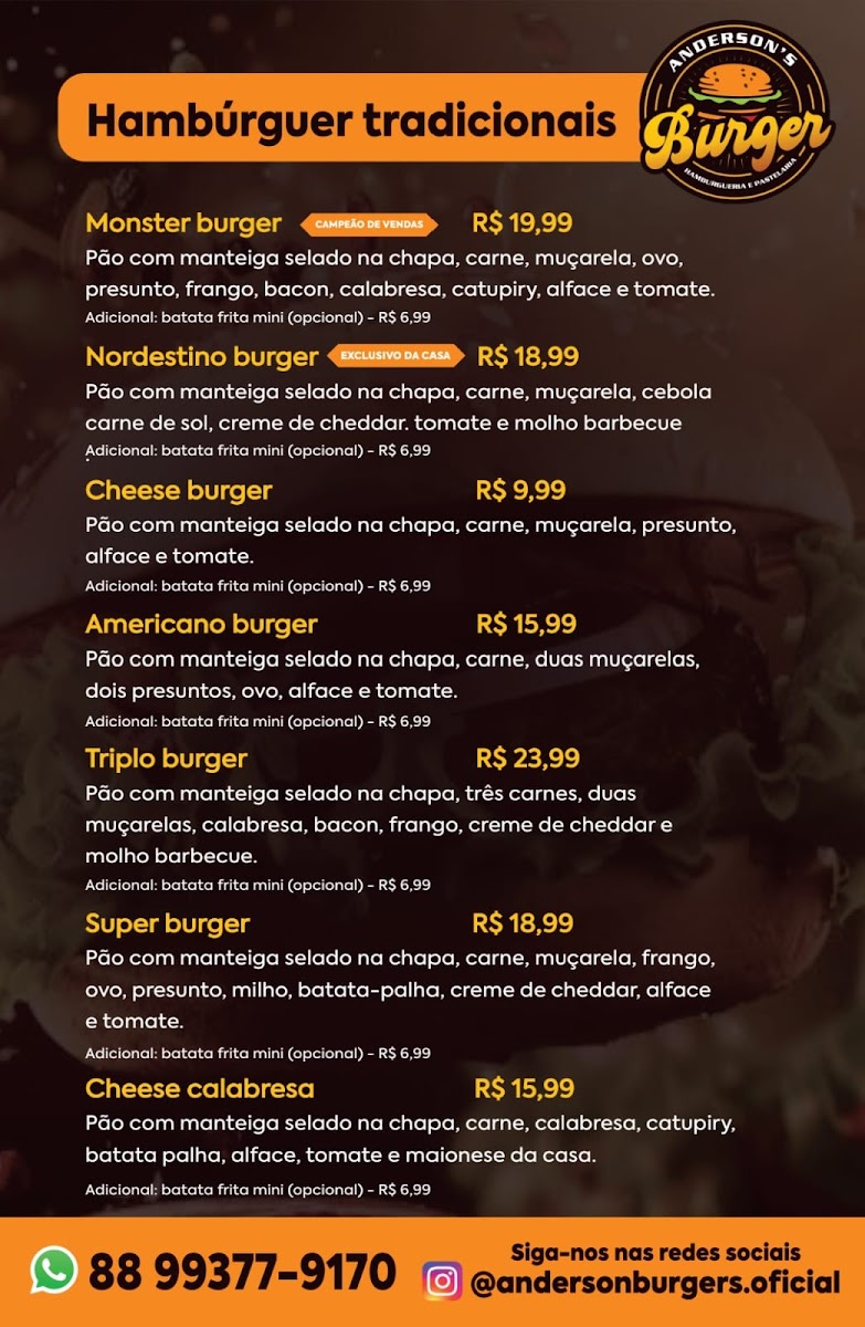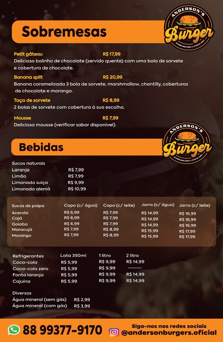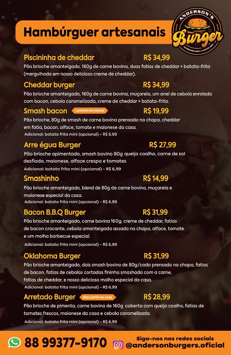 Customers rave about the warm, family-friendly atmosphere and attentive service, creating a space as inviting as the food itself. Whether dining in or ordering delivery via WhatsApp, Anderson Burger's delivers consistently quick and satisfying meals. The variety of fresh juices complements the menu beautifully, adding a refreshing touch to each meal. With convenient parking and free Wi-Fi, Anderson Burger's stands out as the prime destination for comfort food lovers craving authentic Brazilian flavors.