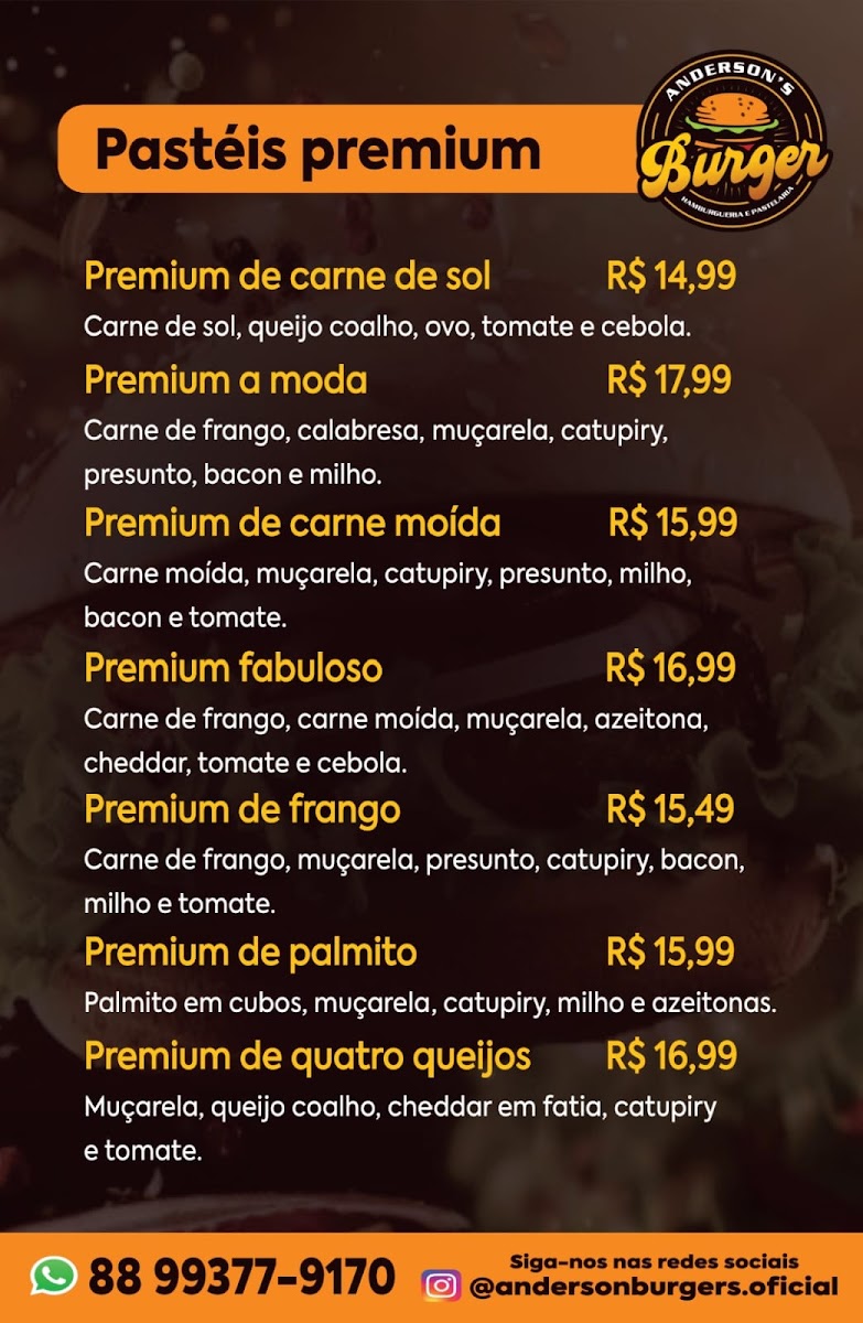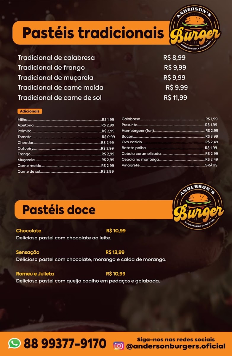 Anderson Burger's | Hamburgueria e Pastelaria in Barbalha is a true gem for those seeking an authentic Brazilian food experience. This cozy spot excels in crafting gourmet hamburgers loaded with fresh, vibrant ingredients that burst with flavor in every bite. The standout is their pão árabe de carne de sol, praised for its perfect balance of savory and tender textures. Alongside the burgers, their traditional Brazilian pastéis shine—generously filled with rich, well-seasoned fillings wrapped in crispy, golden dough.